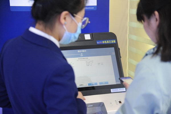 工作人員協(xié)助客戶(hù)辦理業(yè)務(wù)