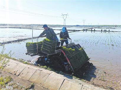 坤站村稻豐糧食種植農(nóng)民專業(yè)合作社理事長楊軍介紹,受氣溫影響,今年插秧比往年延遲一周左右,為了把時間搶回來,合作社社員起早貪黑,從早晨四點多就開始插秧。合作社今年種植水稻面積3000多畝,為抗低溫、保全苗、奪高產(chǎn),全部采用機械化插秧,一臺插秧機每天可插秧50畝。楊軍說,去年建設的水稻公園成為游客網(wǎng)紅打卡地,今年在稻田公園新設計一個慶祝建黨100周年和鄉(xiāng)村振興的彩繪圖案,助力鄉(xiāng)村旅游業(yè)發(fā)展。