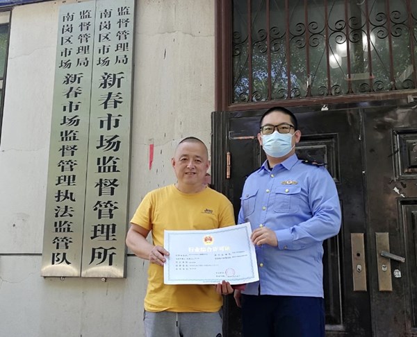 龍頭新聞訊(朱大治 記者劉莉)“真是方便!”6月8日,哈爾濱市南崗區(qū)麒麟蛋糕房經(jīng)營者從哈市南崗區(qū)市場監(jiān)管局新春市場監(jiān)管所拿到《行業(yè)綜合許可證》后由衷感嘆道。這是哈爾濱推進“一業(yè)一證”改革以來發(fā)出的首張《行業(yè)綜合許可證》。