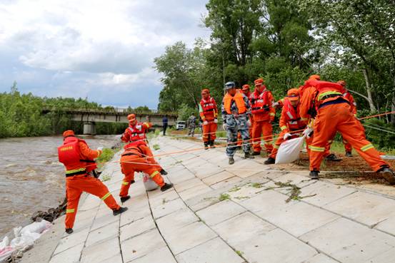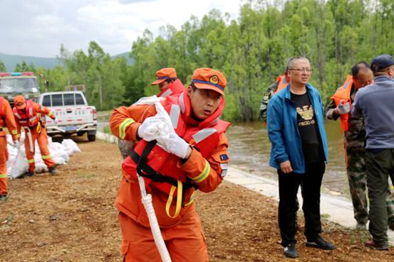在呼中區(qū)抗洪搶險(xiǎn)一線,廣大干部職工正全力以赴奮戰(zhàn)在搶險(xiǎn)救災(zāi)工作中。