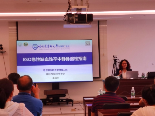 大會同時邀請到中國卒中??坡?lián)盟副主席、中國卒中中心管理指導委員會秘書長、哈爾濱醫(yī)科大學附屬第二醫(yī)院王麗華教授為大家?guī)砹恕禘SO急性缺血性卒中靜脈溶栓指南(2021)》,聚焦國際前沿。卒中中心秘書齊丹則以詳實的數(shù)據(jù)仔細分析了近兩年來中心的質控工作,指出中心診療和流程的不足,為中心精細化管理提供了指導和依據(jù)。