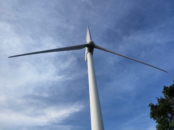 佇立在饒河縣大頂子山景區(qū)的風力發(fā)電機