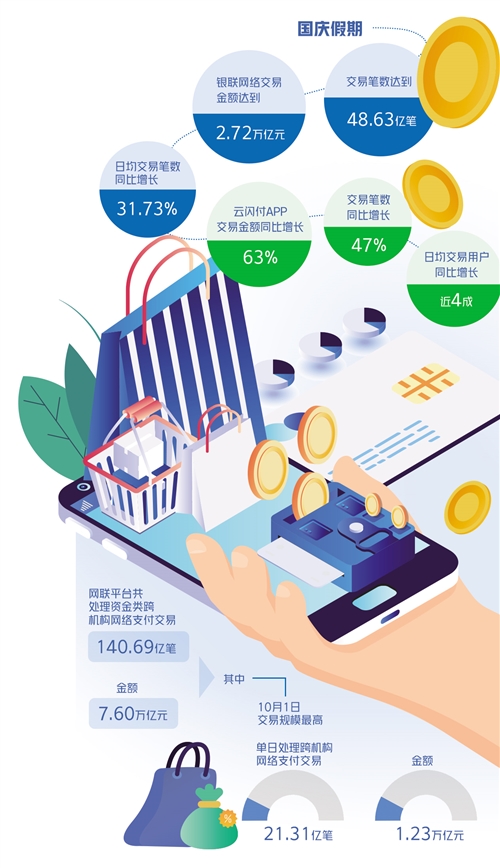 “十一”國慶假期,銀聯(lián)網(wǎng)絡(luò)交易金額達2.72萬億元——