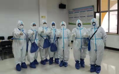 自2020年1月感染內科全體醫(yī)護承擔起發(fā)熱門診此項艱巨任務,一樓設立為發(fā)熱門診留觀室,二樓為核酸未出結果者緩沖病房,三樓、四樓為核酸陰性但尚未解除隔離的留觀病房。此次根據(jù)疫情防控要求,在原本樓層多,醫(yī)護工作“戰(zhàn)線”長的情況下,還特別設立了“巴彥”疫區(qū)專屬樓層。來自風險區(qū)患者就診時,在隔離區(qū)的一名醫(yī)生和一名護士每個班次經常工作6-8小時,樓上樓下的反復奔走,裹著密不透氣的防護服,汗水濕透衣背。長時間的不能喝水吃飯如廁,挑戰(zhàn)人體生理忍耐極限,但從未有人叫苦委屈。白班的同志在結束日間工作后,為了解決科室人員少,且工作量大的情況,主動留下加班到很晚,而第二天還要支援社區(qū)全員核酸采集任務。