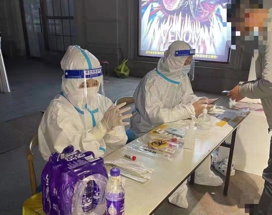 在做好發(fā)熱門診本職工作的同時,護理團隊還全力支援社區(qū)全員采集核酸任務。有的同志在忙碌了一夜夜班后,連家都沒回,又立刻投身到核酸采樣任務中。時間緊任務重,經常早上4、5點鐘就要出發(fā)集合去采樣地點,直到晚10點左右才結束工作。采樣地點多在室外,氣溫低,更是放棄了吃飯休息的時間,爭分奪秒地為一個又一個居民采樣。長達十幾個小時的高壓工作,導致肩頸、手腕損傷,但就算這樣,也從未有人下“戰(zhàn)場”。