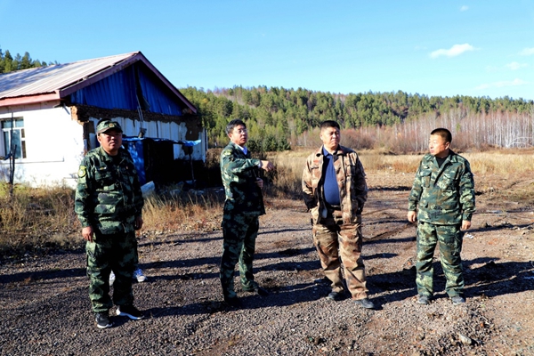 圖為阿木爾林業(yè)局黨委書記胡守慶(中)深入到龍河林場(chǎng)查看利用閑置房產(chǎn)改造成精品民宿情況。王力 攝