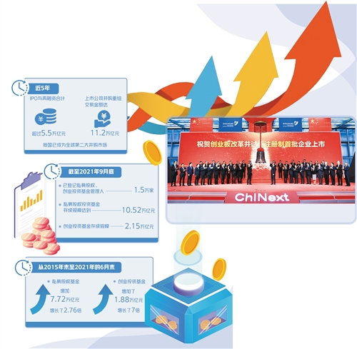 值得關(guān)注的是,私募股權(quán)和創(chuàng)投基金已成為直接融資的重要力量,在為投資者創(chuàng)造財(cái)富回報(bào)的同時(shí),也對(duì)直接融資和實(shí)體經(jīng)濟(jì)具有重要的促進(jìn)作用。數(shù)據(jù)顯示,截至2021年9月底,已登記私募股權(quán)、創(chuàng)業(yè)投資基金管理人1.5萬(wàn)家,私募股權(quán)投資基金存續(xù)規(guī)模達(dá)到10.52萬(wàn)億元,創(chuàng)業(yè)投資基金存續(xù)規(guī)模2.15萬(wàn)億元。從2015年末至2021年的6月末,私募股權(quán)基金增加7.72萬(wàn)億元,增長(zhǎng)了2.76倍。創(chuàng)業(yè)投資基金增加了1.88萬(wàn)億元,增長(zhǎng)了7倍。