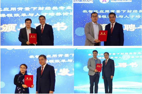 陳西峰為山東財經(jīng)大學(xué)會計學(xué)院院長王愛國教授、華僑大學(xué)工商管理學(xué)院博士生導(dǎo)師楊洪濤教授、哈爾濱工程大學(xué)經(jīng)濟(jì)管理學(xué)院博士生導(dǎo)師楊忠海教授頒發(fā)客座教授聘書,為財智未來(北京)教育科技有限公司總監(jiān)聶鑫、中聯(lián)集團(tuán)教育科技有限公司產(chǎn)教融合事業(yè)部總監(jiān)侯劉成頒發(fā)企業(yè)導(dǎo)師聘書。