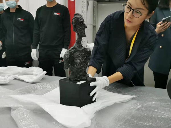 蘇富比為第四屆進(jìn)博會(huì)帶來賈柯梅蒂的《戴亞高的半身像》 新華社記者桑彤 攝