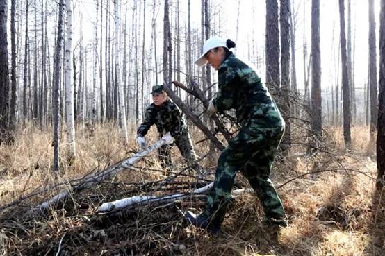 在撫育作業(yè)現(xiàn)地,寒冷的風(fēng)吹拂著干部職工的面龐,腳下過膝高的雜草直往鞋里鉆,一不小心就會(huì)踩進(jìn)冰冷的積水中。雖然工作環(huán)境較為艱苦,可沒有一個(gè)人掉隊(duì)退出,大家沒有牢騷,沒有埋怨,認(rèn)真撿拾著被壓木、腐朽木、枯死木、站桿、藤條及老舊伐根等影響中幼林生長(zhǎng)的木材。雖然機(jī)關(guān)干部職工大多數(shù)人以前都沒有從事過森林撫育工作,但經(jīng)過前期培訓(xùn)和現(xiàn)地實(shí)踐,大家對(duì)撫育技術(shù)操作要領(lǐng)很快掌握嫻熟,一字排開有序地清林歸堆,彼此間默契呼應(yīng),不一會(huì)現(xiàn)地就出現(xiàn)了橫山碼放整齊的枝丫堆。
