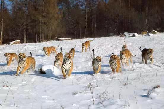 令人震撼的鏡泊湖吊水樓的冰瀑是牡丹江冬季的重要景點之一。在冰凌交錯、銀裝素裹的純凈世界里,世界吉尼斯紀錄創(chuàng)造者——中國懸崖跳水奇人狄煥然,在零下二十多度的鏡泊湖吊水樓冰瀑上,伸展雙臂,凌空一躍,撲向不結(jié)冰的黑龍?zhí)端?,跳入落差?0米的水中,成為鏡泊湖景區(qū)冬季的一道獨特景觀。鏡泊湖水系水質(zhì)較好,水產(chǎn)資源極為豐富,大約有六十多種魚,冬季體驗鏡泊湖的大網(wǎng)捕魚、小網(wǎng)掛魚,在每年辭舊迎新之際看一場冬捕,絕對是預(yù)示著年年有余好兆頭的絕佳體驗。在漁夫們高亢的號子聲中,800多米長的大網(wǎng)從冰洞中漸漸滑出,胖頭魚、鯽魚、鯉魚等翻滾著、跳躍著,冒著熱氣蹦到冰面,“萬尾鮮魚出玉門”的奇觀景象讓人感嘆不已。橫道東北虎林園是世界上最大的東北虎人工飼養(yǎng)繁育基地和野化訓練基地。在幾代養(yǎng)虎人的辛勤努力下,已繁育活體東北虎1100余只,建有猛虎園、靈長類館、幼虎生態(tài)館、高空玻璃棧道、珍稀動物觀賞園、科普展覽館、觀虎長廊、虎文化廣場等多個景點。在這里,可以感受到獸中之王奔跑在蒼茫林海雪原的風馳電掣。也可以感受到成群東北虎躺臥在皚皚白雪“互談心事”的百般愜意,還可以領(lǐng)略到虎牛相斗、群虎撲食的驚險刺激。