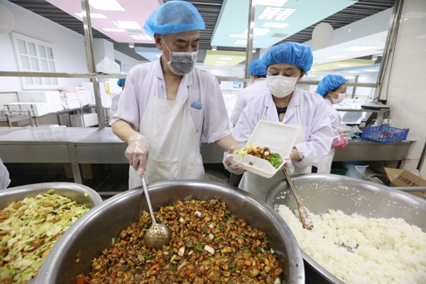 消化內(nèi)科16個(gè)月大的患兒浩浩是過敏體質(zhì),因發(fā)熱、腹瀉、進(jìn)食后嘔吐住院治療,這個(gè)孩子既往過敏原檢查對(duì)大米、西紅柿、雞蛋等多種食物過敏,所以食堂針對(duì)這個(gè)孩子飲食單獨(dú)配餐,主食以小麥類饅頭等為主,蔬菜以在家經(jīng)常食用的菜類制作,保證患兒的營(yíng)養(yǎng)進(jìn)食。據(jù)了解,哈爾濱醫(yī)科大學(xué)附屬哈爾濱兒童醫(yī)院全力保障300多名住院患兒以及陪護(hù)家屬的一日三餐飲食。每天患兒家長(zhǎng)通過住院患者訂餐系統(tǒng)平臺(tái)網(wǎng)上自助訂餐,食堂配餐送到病房。鞠樹斌介紹,食堂每天負(fù)責(zé)醫(yī)院職工和患者及陪護(hù)家屬800多人次的一日三餐,在崗的25名工作人員,每天從3時(shí)開始準(zhǔn)備早餐,8時(shí)制作午餐,14時(shí)又開始做晚餐。工作雖然忙碌,但卻覺得自己的努力能讓患者們?cè)谧≡浩陂g吃得安心、舒心,又覺得自己價(jià)值感滿滿。
