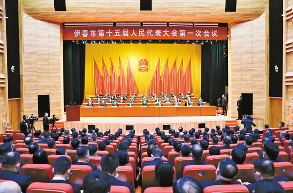 伊春市第十五屆人民代表大會第一次會議開幕式現場。