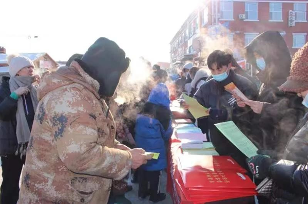 黑龍江經(jīng)濟(jì)網(wǎng)訊( 劉妍 王曉微 記者仉慶華)日前,嘉蔭縣烏云鎮(zhèn)的中心街道上,村民們緊緊環(huán)繞在“除陋習(xí) 樹(shù)新風(fēng)”主題宣傳臺(tái)周圍,參加由嘉蔭縣新時(shí)代文明實(shí)踐中心組織的迎新春綜合宣傳活動(dòng)?;顒?dòng)現(xiàn)場(chǎng),工作人員圍繞黨的十九屆六中全會(huì)精神、鄉(xiāng)風(fēng)文明、疫情防控等內(nèi)容開(kāi)展全方位宣傳,參加活動(dòng)的群眾認(rèn)真聆聽(tīng),時(shí)而交流談?wù)?、時(shí)而低頭深思,現(xiàn)場(chǎng)其樂(lè)融融,一派熱鬧景象。