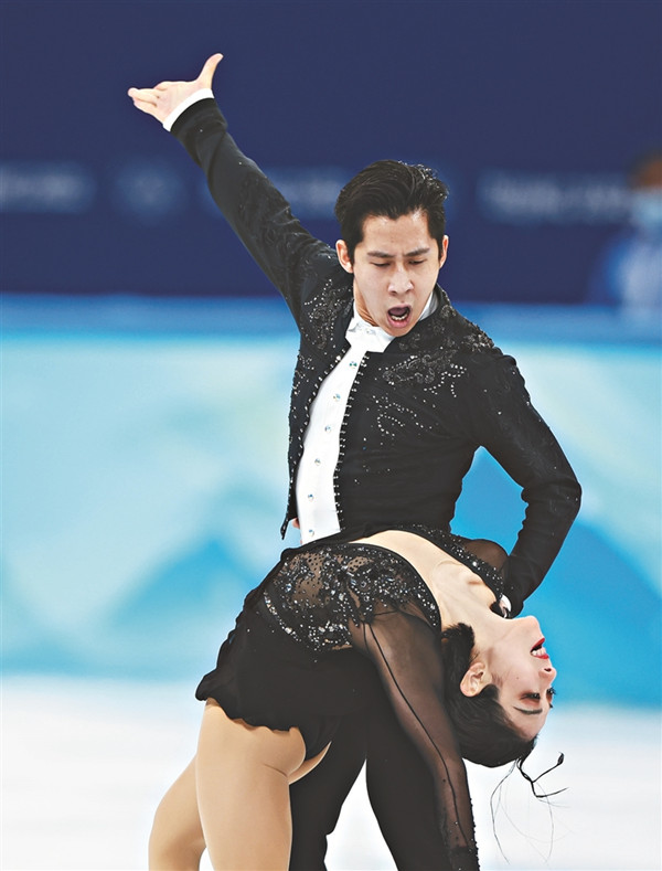 隋文靜(前)/韓聰在比賽中。 新華社記者 曹燦攝