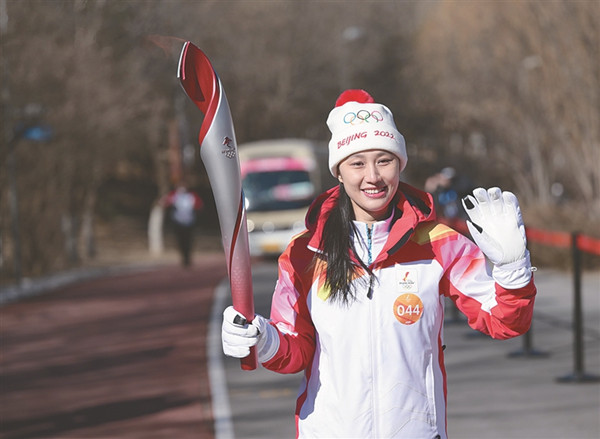 楊揚(yáng)在開幕式上傳遞火炬。 新華社記者 薛宇舸攝