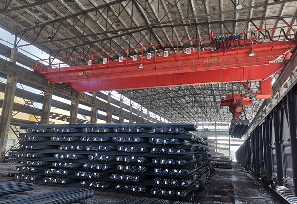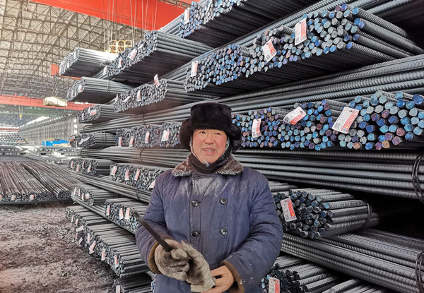 在鋼材成口庫,一位身穿工裝大棉襖、頭戴棉帽,捂得嚴(yán)嚴(yán)實(shí)實(shí),臉色微紅的,帽沿掛滿了霜的工人十分引人注目。他叫朱世軍,是軋鋼廠發(fā)運(yùn)作業(yè)區(qū)丙班的一名普通司索操作員,初一正是白班,主要負(fù)責(zé)鋼材裝運(yùn)掛鉤和為火車車皮用鐵線鎖車門工作,一但發(fā)運(yùn)繁忙時(shí),無論白班還是夜班都得在室外作業(yè)裝車,企業(yè)鋼材就靠他們配合裝上火車發(fā)往市場的?!敖裉斓冒l(fā)運(yùn)鋼材110車左右,每天上班,在成品庫得上上下下,得走好幾里地,今天就挺冷啊,最低零下26度,冷風(fēng)吹的嘴都木了,既使戴著棉手套,手也都凍僵了,但是,每天一想到通過我的努力,把建龍西鋼鋼材發(fā)往全國各地,為建龍西鋼美好企業(yè)建設(shè)做貢獻(xiàn),我雖然冷點(diǎn)但心里熱乎乎的,真心感到驕傲和自豪。