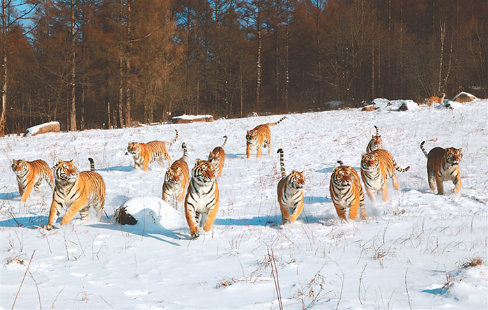 在這片冰天雪地之中,還有非常可愛(ài)的動(dòng)物。在東北虎林園和橫道東北虎林園中,雪地“跑酷”的東北虎盡展百獸之王的颯爽雄姿;齊齊哈爾扎龍國(guó)家級(jí)自然保護(hù)區(qū)的丹頂鶴,雪地起舞別有風(fēng)情;亞布力熊貓館中翻滾嬉鬧的佑佑和思嘉萌趣可愛(ài);哈爾濱極地公園的網(wǎng)紅“淘學(xué)企鵝”,在雪地散步憨態(tài)可掬;野生“狍子君”在大興安嶺的林中穿梭,聽(tīng)到聲音還會(huì)好奇的回頭……這些龍江冬日里的小可愛(ài)們,活力十足,讓人心生喜愛(ài)。