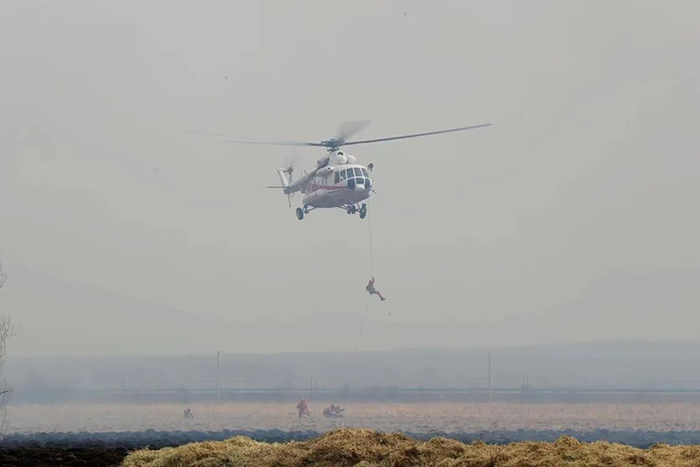上午11時(shí)許,演練指令正式下達(dá),信號(hào)彈騰空而起,一場(chǎng)以管護(hù)區(qū)內(nèi)某重點(diǎn)林區(qū)發(fā)生火災(zāi)為演練背景的撲火戰(zhàn)斗全面打響。隨著一道道命令的下達(dá),各參演單位指戰(zhàn)員迅速行動(dòng),按照林火監(jiān)測(cè)和火情報(bào)告、接警處置和啟動(dòng)預(yù)案、組織兵力投送、組織指揮滅火行動(dòng)等工作流程,有序組織開展演練。演練中,撲火隊(duì)伍結(jié)合火場(chǎng)態(tài)勢(shì),科學(xué)選用兩翼對(duì)進(jìn)、鉗形夾擊,多點(diǎn)突破、分段圍殲等戰(zhàn)法,重點(diǎn)演練了無人機(jī)滅火、直升機(jī)空中作業(yè)、常規(guī)滅火、大型裝備滅火等內(nèi)容。來自市森林消防支隊(duì)、應(yīng)急航空救援伊春站、市應(yīng)急救援支隊(duì)、市消防救援支隊(duì),烏伊嶺、湯旺河、新青、紅星、五營(yíng)、上甘嶺、友好、翠巒、美溪林業(yè)局公司撲滅火大隊(duì),新青林業(yè)局公司紅林、湯林林場(chǎng)分公司快速撲滅火小隊(duì)和民兵預(yù)備隊(duì)等單位,共計(jì)800余人參加演練。