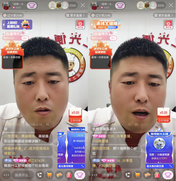 將每日準(zhǔn)備的“菜譜”分享完后,韓總廚還會(huì)在直播間和粉絲們談心聊天。“家長里短的事兒我們也都會(huì)聊,大家的氛圍很好,也都不受拘束?!睂?duì)于韓總廚和粉絲們來說,快手不僅是交流分享美食秘訣的平臺(tái),更是朋友間無話不談的情感交流地。