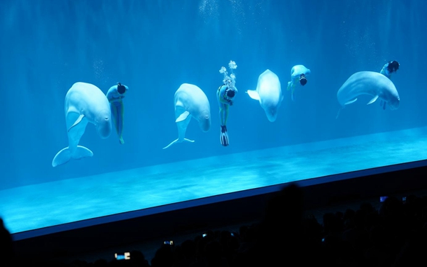 2009年,哈爾濱極地公園首推極地白鯨水下表演,歷時13年的時間,“來哈爾濱·看白鯨表演”已經(jīng)成為全國游客心馳神往的旅游節(jié)目,而表演中經(jīng)典的“海洋之心”不僅獲得了原創(chuàng)版權(quán),也成為了哈爾濱一張具有浪漫色彩的文旅名片,獲得國內(nèi)、國際主流媒體持續(xù)十余年的關(guān)注。2021年5月,三只可愛的極地白鯨創(chuàng)造的“三鯨開泰”首次亮相;現(xiàn)在,哈爾濱極地公園的白鯨家族推出“四鯨巡游”、“四鯨祈?!钡雀唠y度表演,再一次創(chuàng)造了經(jīng)典。