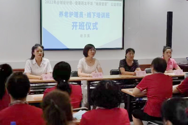 黑龍江經(jīng)濟網(wǎng)訊(王巖)為進一步培養(yǎng)養(yǎng)老護老專業(yè)人才,提升養(yǎng)老護理員隊伍職業(yè)化、專業(yè)化水平,7月26日,由中國婦女發(fā)展基金會與愛茉莉太平洋發(fā)起,哈爾濱市婦聯(lián)指導(dǎo),黑龍江龍妹職業(yè)技能培訓(xùn)學(xué)校承辦的“愛茉莉太平洋‘她來管家’女性賦能公益項目”養(yǎng)老護理員線下培訓(xùn)班正式開班,來自各區(qū)縣社區(qū)的34名學(xué)員參加了開班儀式。