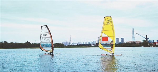 活動現(xiàn)場,摩托艇、水上飛行器、滑水板、帆板、帆船以及快艇觀光等多個水上運(yùn)動項(xiàng)目輪番亮相。乘著江風(fēng),摩托艇以最大馬力在江中飛馳,水上飛行器在空中進(jìn)行翻轉(zhuǎn)和沖浪……一場“速度與激情”的表演,引得觀眾連連拍手叫絕。