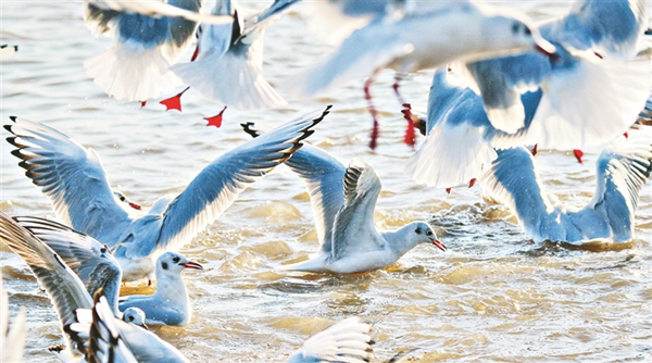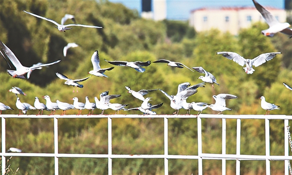近年來(lái),隨著環(huán)境保護(hù)力度的加大,松花江生態(tài)持續(xù)向好,水豐魚多,給紅嘴鷗等候鳥提供了豐富的食物。每年,都有超過(guò)萬(wàn)只的紅嘴鷗春秋兩季在松花江這處“驛站”歇腳。 黑龍江日?qǐng)?bào)記者 張澍攝