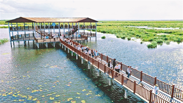 近日,寶清縣七星河國(guó)家級(jí)自然保護(hù)區(qū)濕地內(nèi)迎來(lái)大批游客,一望無(wú)際的濕地和葦塘讓游客心曠神怡。游客登上觀鳥(niǎo)臺(tái),俯瞰濕地,夕陽(yáng)下大批的水鳥(niǎo)在七星河內(nèi)覓食嬉戲,“葦蕩連天碧,水鳥(niǎo)漫云空”,一幅人與自然和諧共生的真實(shí)寫(xiě)照。