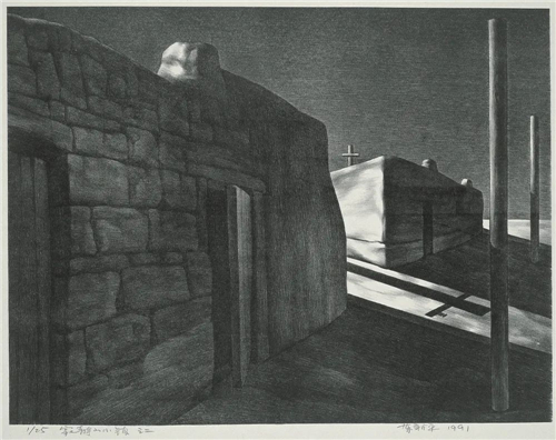 寂靜的小鎮(zhèn)之二 52×69cm 石版畫 1991年