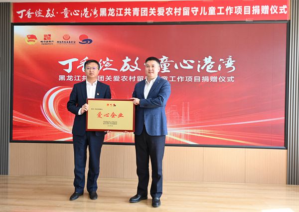 啟動(dòng)儀式上,哈爾濱銀行、同佳岸慈善基金會(huì)向黑龍江省青少年發(fā)展基金會(huì)捐贈(zèng)500萬(wàn)元,用于實(shí)施“丁香綻放·童心港灣”項(xiàng)目。該項(xiàng)目連續(xù)實(shí)施5年,用于我省留守兒童較為集中地區(qū)建設(shè)“童心港灣”,以0-14歲少年兒童為服務(wù)對(duì)象,以留守兒童為關(guān)注重點(diǎn),就近招募22-50周歲的女性為童伴媽媽,為孩子們提供身邊可及的關(guān)愛(ài)陪伴服務(wù),通過(guò)周末和假期定時(shí)開(kāi)放,由童伴媽媽全程陪同,彌補(bǔ)留守兒童由于父母不在身邊導(dǎo)致的親情缺失,助力農(nóng)村留守兒童健康成長(zhǎng)。為感謝哈爾濱銀行長(zhǎng)期以來(lái)對(duì)黑龍江省希望工程的大力支持和突出貢獻(xiàn),共青團(tuán)黑龍江省委、黑龍江省青少年發(fā)展基金會(huì)現(xiàn)場(chǎng)向哈爾濱銀行頒發(fā)愛(ài)心企業(yè)獎(jiǎng)牌和龍江希望工程30年致敬證書(shū)。