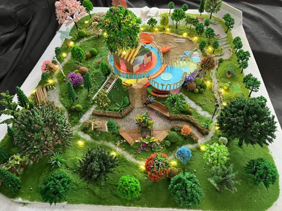 作品展指導(dǎo)教師之一王丹告訴記者:“學(xué)生們設(shè)計的所有校園環(huán)境景觀模型,都是根據(jù)東北林大校園內(nèi)的實際地塊結(jié)合周邊情況精心測繪和調(diào)研后設(shè)計制作的。通過此次實踐課程,使同學(xué)們了解海綿城市、雨水花園、風(fēng)能、太陽能等相關(guān)生態(tài)知識,實現(xiàn)理論與實踐相結(jié)合,在設(shè)計過程積極踐行生態(tài)文明理念,傳承和發(fā)揚(yáng)東林特色與精神?!?