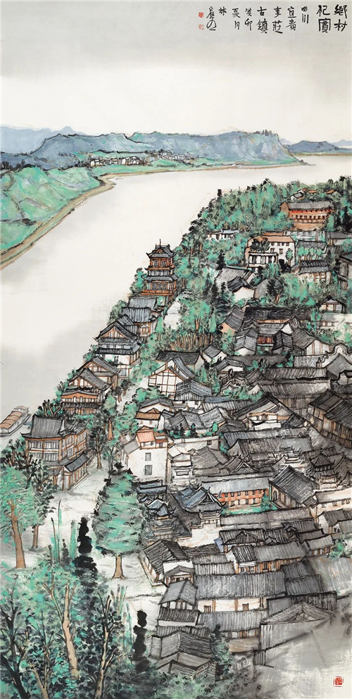 林容生 鄉(xiāng)村紀(jì)實·宜賓李莊古鎮(zhèn) 234cm×123cm 國畫
