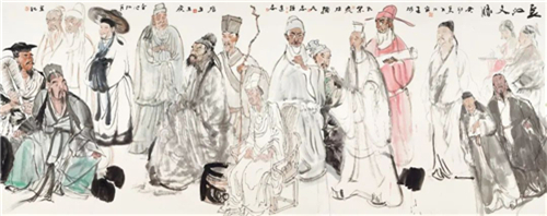 張江舟、紀(jì)連彬、孔紫、李曉柱、李乃宙、王輔民、盧志強(qiáng)、李連志、王瑛、張培生 長江文脈 145cm×365cm 國畫