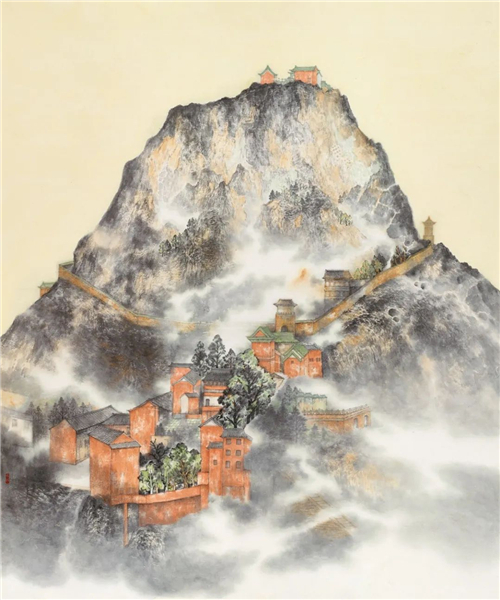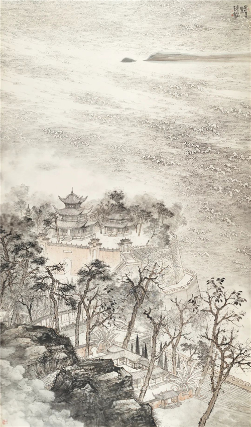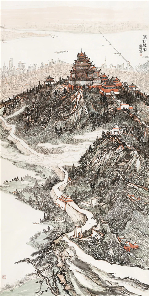 朱道平 閱江樓圖 234cm×123cm 國畫