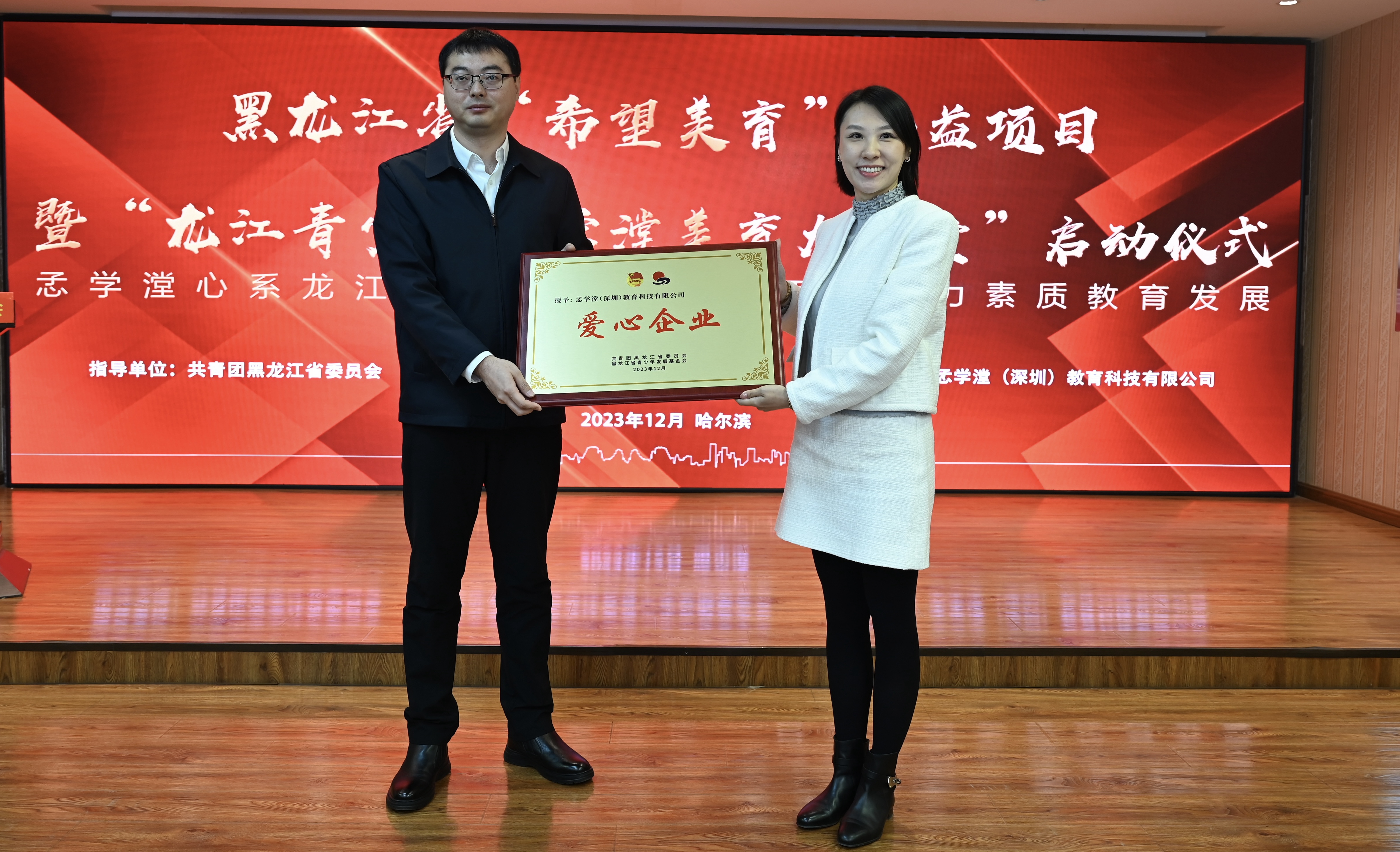 為深入貫徹習近平總書記對希望工程實施30周年的重要寄語精神,進一步提升新時代希望工程的助學育人質量,12月12日,黑龍江省“希望美育”公益項目暨“龍江青少年孞學漟美育大講堂”啟動儀式在希望大廈舉行。黑龍江省文學藝術界聯(lián)合會一級巡視員張正明,共青團黑龍江省委副書記代東力,黑龍江省青聯(lián)委員、深圳市孞學漟教育科技有限公司創(chuàng)始人楊梓杺,黑龍江省民政廳、黑龍江省青少年發(fā)展基金會等相關單位領導,嘉仁公益、益家公益代表,伙伴計劃社區(qū)代表,哈爾濱市松北區(qū)樂業(yè)小學“童心港灣”代表,哈爾濱市蘇寧紅軍小學校、哈爾濱市合眾人壽希望小學、哈爾濱新區(qū)第三學校等學校師生代表參加活動。