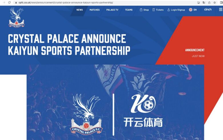 榮耀登場(chǎng)!開(kāi)云體育成為水晶宮俱樂(lè)部官方袖標(biāo)贊助商