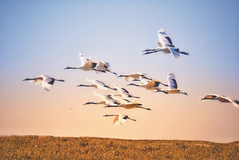 扎龍國家級自然保護(hù)區(qū)內(nèi)碧波蕩漾、水草豐盛,游客行走在濕地的棧道上,感受微風(fēng)清涼,在自然大氧吧里暢快呼吸,看丹頂鶴野化放飛,與丹頂鶴近距離互動,人鳥共生自然和諧……好一幅“荻花不染塵埃色,野鳥閑鳴天籟聲”的醉人畫卷。