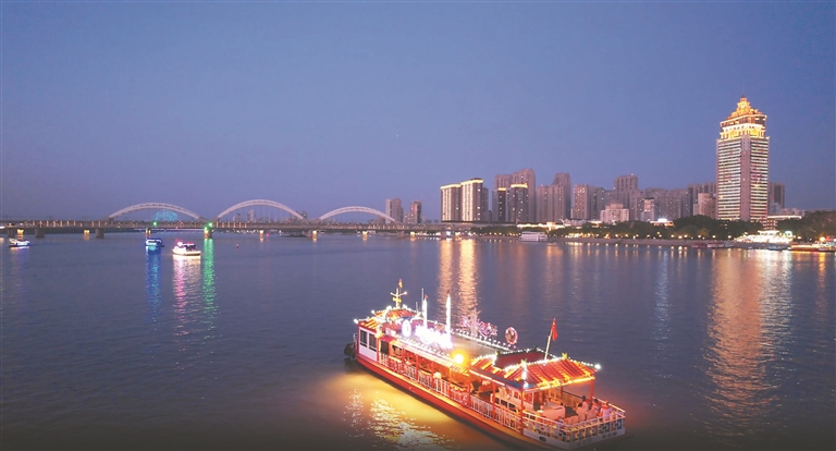 夜晚的松花江上,涼風(fēng)習(xí)習(xí)、碧波蕩漾,乘坐游船吹著江風(fēng)欣賞沿途迷人的風(fēng)光,成為哈爾濱市民及游客消暑納涼的佳選。1日,哈爾濱市舉辦“濱江夜韻·夜游松花江”主題活動(dòng),精心打造的8艘亮化夜游船只,巧妙融合了燈光藝術(shù)、音樂、文化表演等元素,為市民和游客奉上獨(dú)具特色的夜游體驗(yàn)。