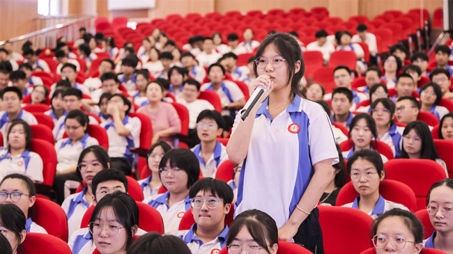 泰來(lái)一中學(xué)生在現(xiàn)場(chǎng)向北京大學(xué)學(xué)子提問(wèn)