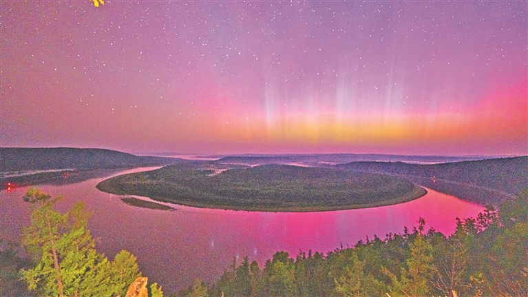 當游客親眼目睹北極光的那一刻,體會的是觸動心靈的震撼。“站在山頂,當那綠色的光帶緩緩劃過夜空,我仿佛被整個宇宙擁抱?!庇慰蛷埮考拥卣f,“這不僅是視覺上的盛宴,更是心靈上的雙重幸運和幸福。”今年,不少游客在夜幕降臨后,有幸目睹了絢爛的北極光在夜空中舞動,那如夢似幻的場景,讓每一位親歷者都感嘆不已。北極光的出現,不僅讓龍江第一灣的自然景觀更加豐富多彩,也讓它成為了無數人心中向往的夢幻之地。