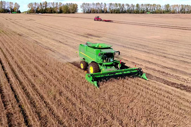 也正如老李說(shuō)的,糧食豐產(chǎn)豐收,離不開農(nóng)業(yè)的科技支撐。在取得2023年全國(guó)農(nóng)墾提單產(chǎn)“大比武”優(yōu)勝農(nóng)場(chǎng)的基礎(chǔ)上,引龍河農(nóng)場(chǎng)有限公司黨委按照省委農(nóng)村工作會(huì)議、北大荒集團(tuán)、北安分公司備春耕生產(chǎn)工作推進(jìn)會(huì)議精神,以振興中國(guó)大豆產(chǎn)業(yè)為己任,落實(shí)落靠“穩(wěn)糧擴(kuò)豆”任務(wù),將大豆大面積單產(chǎn)提升作為農(nóng)業(yè)生產(chǎn)的主攻方向。2024年,這個(gè)農(nóng)場(chǎng)大豆一年“重茬”面積5.7萬(wàn)畝,占大豆播種面積的18.23%;兩年“重茬”面積6.9萬(wàn)畝,占大豆播種面積的21.91%;兩年以上“重茬”面積9.2萬(wàn)畝,占大豆播種面積的29.22%。為更加有效應(yīng)對(duì)大豆重茬,農(nóng)場(chǎng)通過(guò)應(yīng)用重茬大豆提單產(chǎn)的各項(xiàng)措施,例如底肥增施生物有機(jī)肥和微生物菌肥,花期噴施大量元素水溶肥和微生物菌劑,大豆的產(chǎn)量有了非常明顯的提升,成熟度非常好,而且百粒重提高了1.5克,單數(shù)平均增加了1.9個(gè)莢數(shù)和3.48個(gè)粒數(shù)。與此同時(shí),還以深松為重點(diǎn),結(jié)合翻、耙、旋、起、壓等措施,提高整地質(zhì)量,打破板結(jié)層,增加土壤透氣性,奠定大豆播種基礎(chǔ),為大豆萌發(fā)和根系生長(zhǎng)創(chuàng)造良好的土壤條件,并選擇土壤有機(jī)質(zhì)含量高地塊種植“重茬”大豆。合理安排大豆播種順序,先播種正茬大豆,待溫度回暖后再播“重茬”大豆,避免低溫冷量“重茬”病害的疊加。