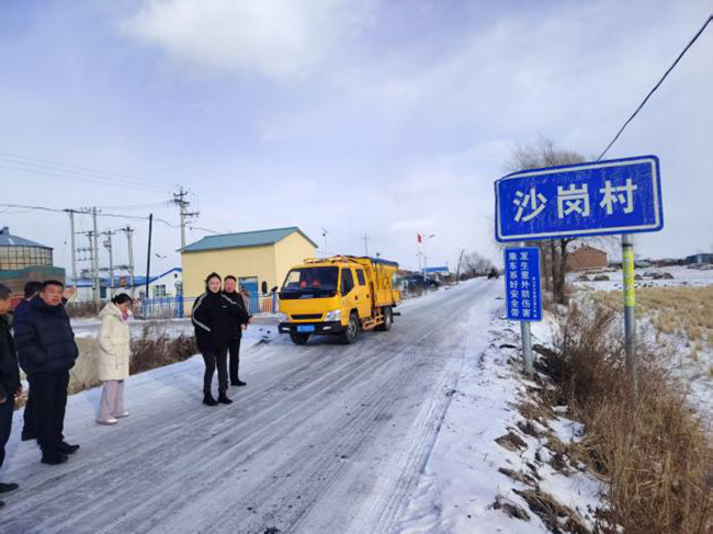 1月6日早8點,密山市交通運輸局派來專業(yè)的融雪撒布機準時到達沙崗村。各個小組長帶領融雪撒布機在村內主要道路、陡坡、彎道等易結冰路段撒布融雪劑,配合人工清掃,有效加速了冰雪消融,提升了道路安全性。