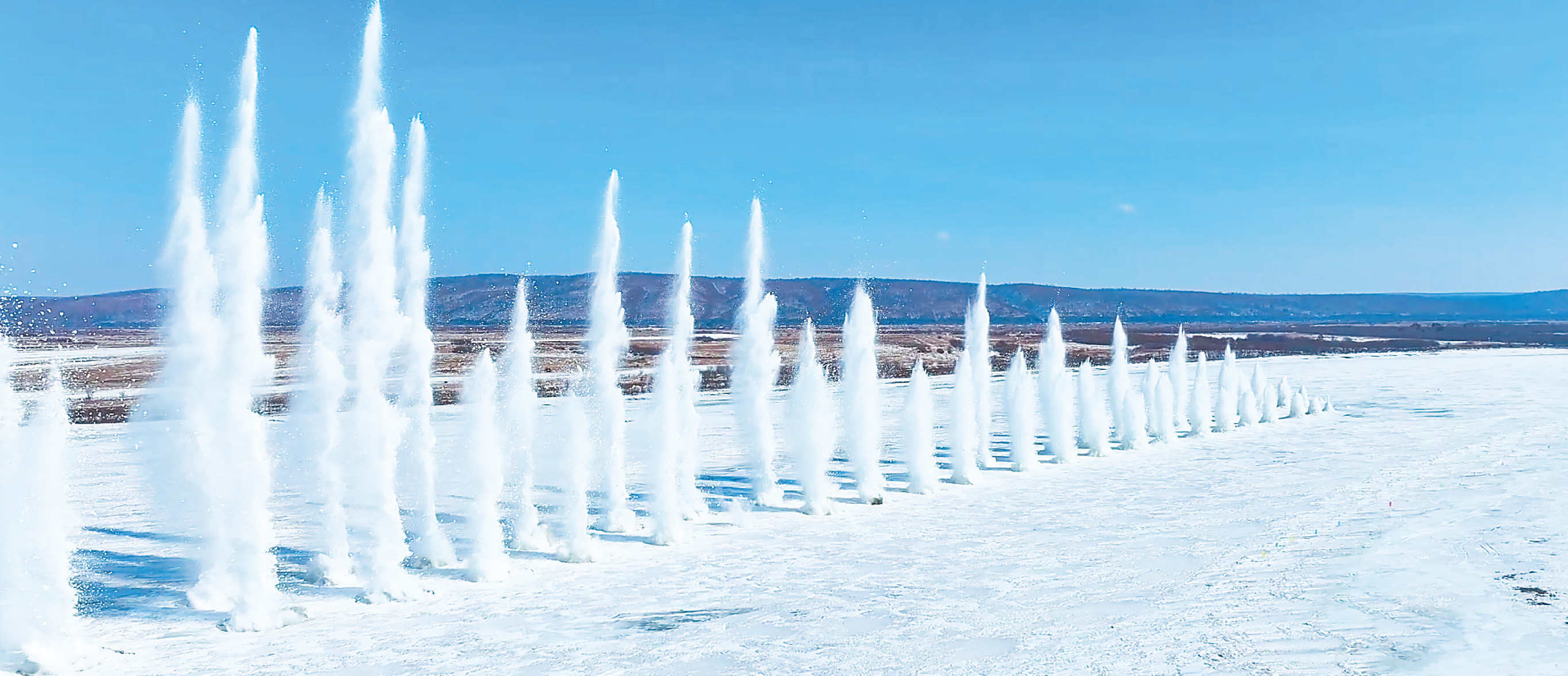 短短幾秒的時(shí)間,航標(biāo)號(hào)262到264之間的黑龍江江面上,便瞬間形成了幾十米高的冰霧柱和三公里長(zhǎng)的破碎段,場(chǎng)面非常壯觀?!敖?jīng)前期凌汛會(huì)商,今春黑龍江上游發(fā)生冰凌卡塞的可能性較大,所以我們決定對(duì)黑龍江呼瑪鎮(zhèn)上江島段和鷗浦鄉(xiāng)三合段兩個(gè)主要區(qū)域?qū)嵤┤L(zhǎng)4800米的主動(dòng)防凌爆破作業(yè)?!焙衄斂h水務(wù)局副局長(zhǎng)王軍說(shuō)。據(jù)悉,鷗浦鄉(xiāng)三合江段1800米的防凌爆破作業(yè)將于2日實(shí)施。