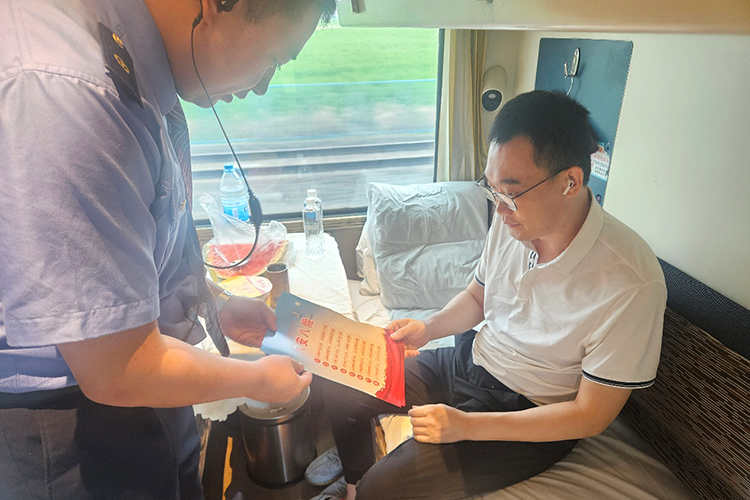 為了讓旅客也參與到安全行動(dòng)中來,乘務(wù)員們化身安全宣傳員,穿梭在各個(gè)車廂為旅客發(fā)放安全知識(shí)宣傳單,不斷強(qiáng)化旅客的安全意識(shí)。