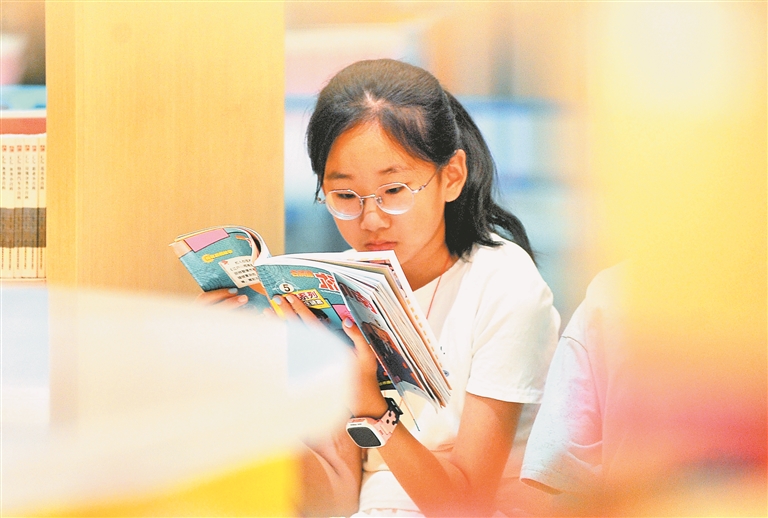 隨著暑假的到來(lái),哈爾濱市南崗新華書(shū)店成為眾多學(xué)生的熱門打卡地,每天都有許多孩子來(lái)到書(shū)店里“充電”。書(shū)架上,各種各樣的圖書(shū)琳瑯滿目,其中科普、科幻題材的書(shū)籍尤其受到學(xué)生們歡迎。挑選出自己喜歡的圖書(shū)后,有的孩子讓家長(zhǎng)把書(shū)買回家慢慢看,也有的孩子直接坐在書(shū)店里的座位上閱讀。