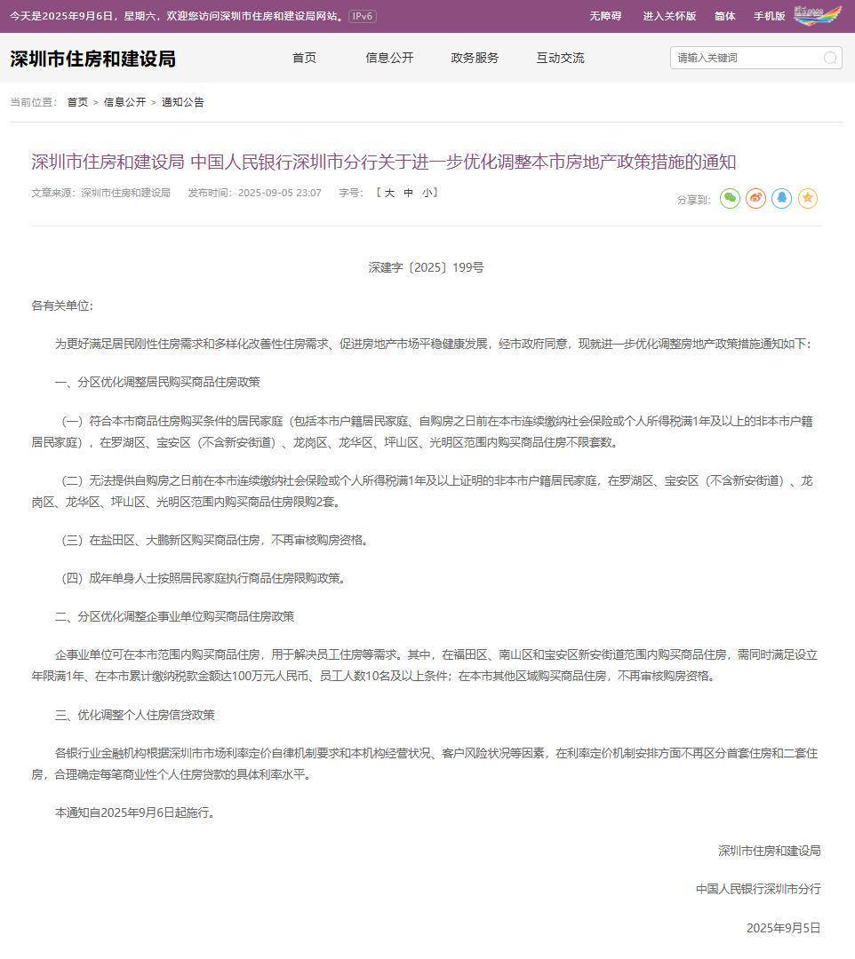 為進一步滿足居民住房需求,促進房地產市場平穩(wěn)健康發(fā)展,深圳市自2025年9月6日起優(yōu)化調整房地產政策,鹽田區(qū)、大鵬新區(qū)購買商品住房不再審核購房資格,其他部分區(qū)域也大幅放寬限購條件。