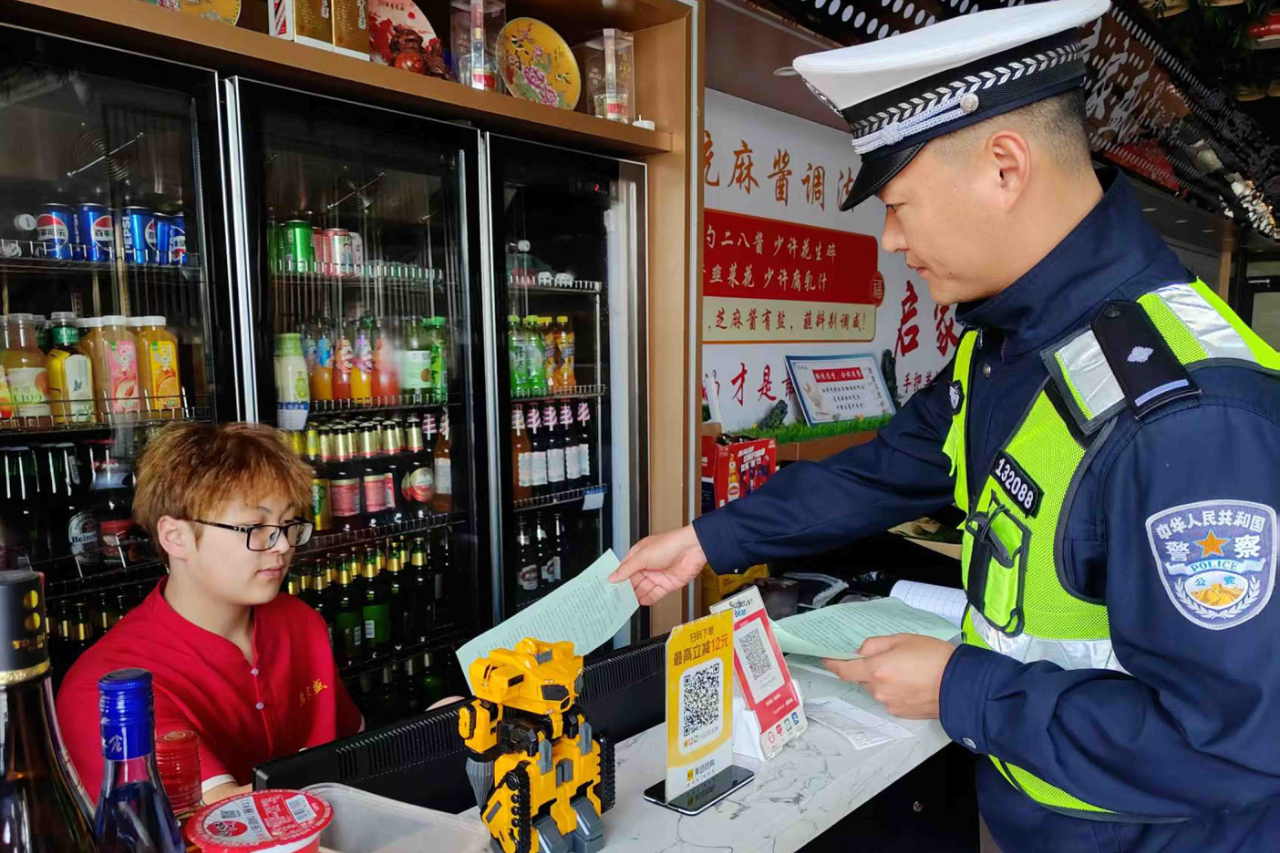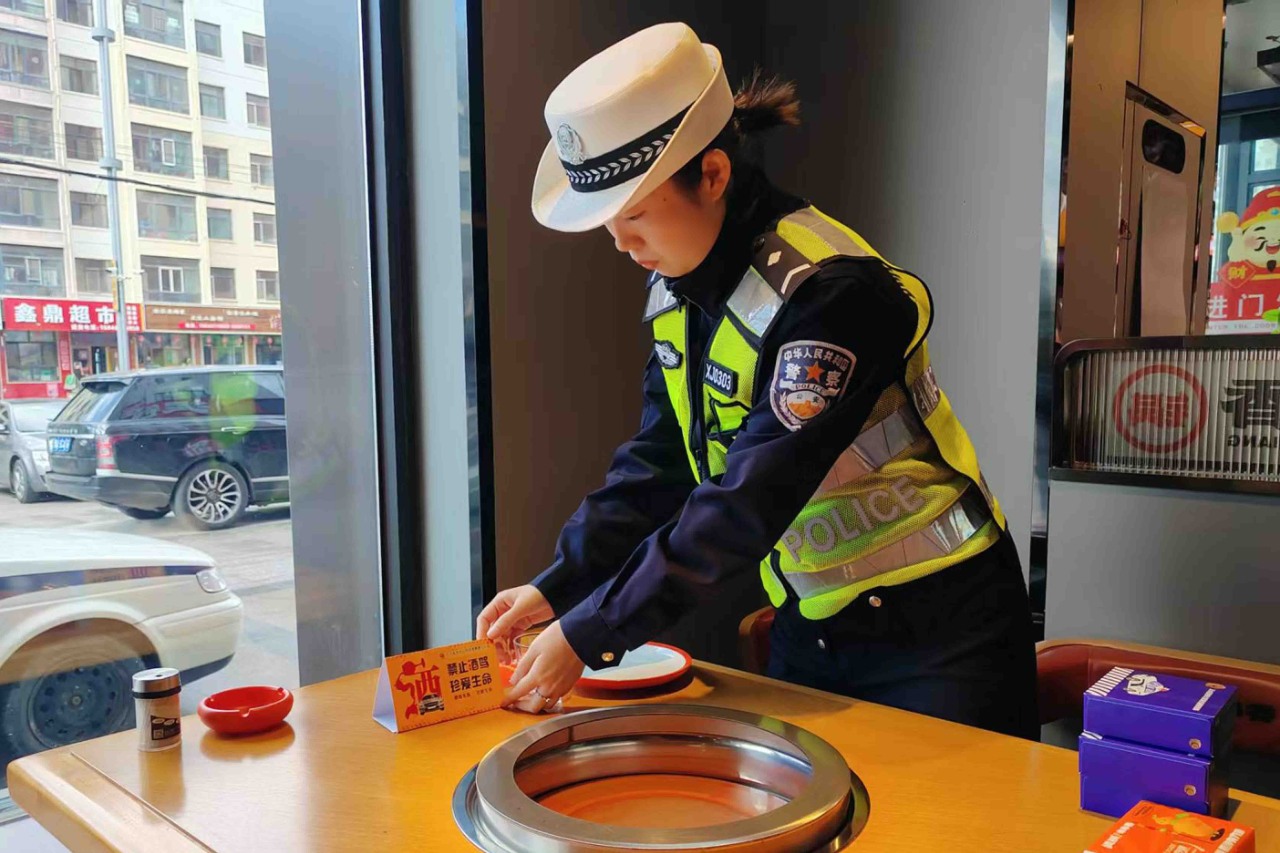 活動中,民警在餐飲場所大堂、前臺、電梯、餐桌等較為明顯的位置張貼海報、擺放提示桌簽等宣傳品,通過這種直觀、易懂的方式,在潛移默化中引導(dǎo)前來就餐的群眾提升安全出行意識和酒后禁駕意識,自覺摒棄交通違法行為,爭當(dāng)文明交通的參與者、維護(hù)者。同時,采取發(fā)放宣傳資料、以案說法等形式,向餐飲場所負(fù)責(zé)人、服務(wù)員認(rèn)真細(xì)致講解酒后駕駛違法行為的嚴(yán)重危害,發(fā)動涉酒場所從業(yè)人員發(fā)揮安全勸導(dǎo)員作用,及時勸阻、糾正、舉報酒后駕駛行為,共同筑牢交通安全防線,最大限度地從源頭預(yù)防酒駕醉駕違法行為的發(fā)生。