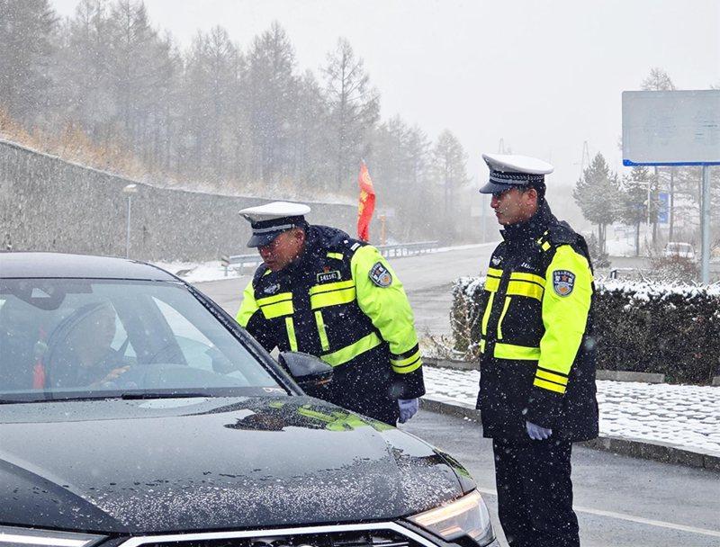 “雪天要及時清理車上積雪,避免出現(xiàn)視線盲區(qū)”“咱們一定保持勻速行駛,不要猛踩油門……”針對雨雪天氣的交通情況以及路面積雪結(jié)冰實際,民警重點突出轄區(qū)國省道等事故多發(fā)點段的巡邏管控力度,一方面通過開啟警示燈,利用警車喊話器,提醒過往駕駛?cè)酥?jǐn)慎駕車,確保行車安全;另一方面在轄區(qū)事故多發(fā)點段、重點路段積極指揮疏導(dǎo)交通,開展路面清雪、撒布防滑料工作,幫助受困車輛。