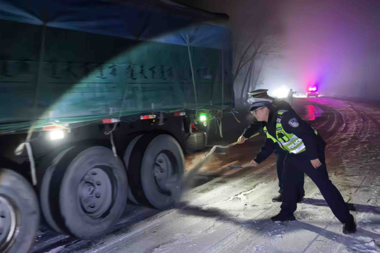 黑龍江經(jīng)濟(jì)網(wǎng)訊(李寶 劉昌龍 記者梁新立)近日,五大連池市轄區(qū)遭遇持續(xù)低溫降雪天氣,部分國(guó)省縣鄉(xiāng)道路出現(xiàn)積雪結(jié)冰,大型車輛行駛困難,通行風(fēng)險(xiǎn)顯著升高。為保障道路暢通與行車安全,五大連池市公安局反恐與交巡特警大隊(duì)迅速啟動(dòng)冰雪天氣應(yīng)急預(yù)案,積極應(yīng)對(duì),組織警力開(kāi)展路面防滑處置工作,全力保障群眾出行安全。